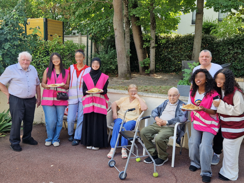 Les bénévoles ont préparé avec les résidents de délicieuses crêpes, favorisant échanges et souvenirs autour de cette activité gourmande.