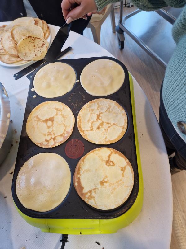 Le personnel s’est joint à la fête, aidant à la préparation et servant les crêpes bien chaudes. 🥞