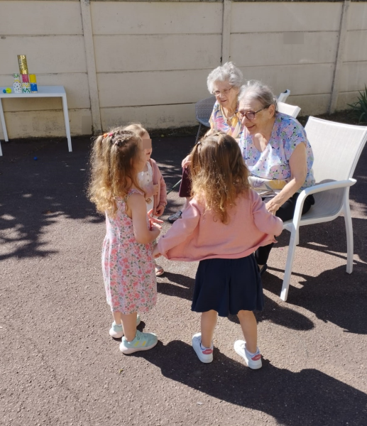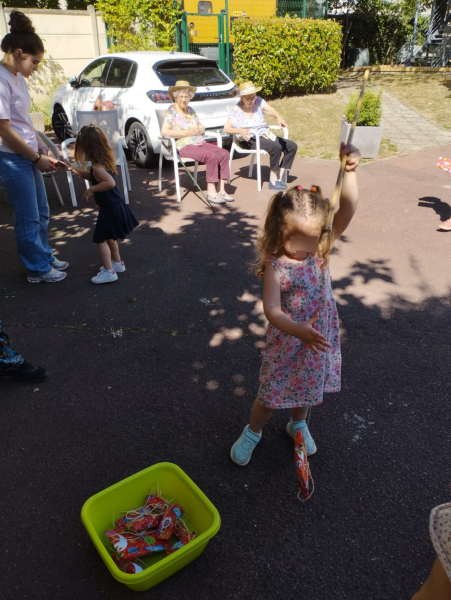 Au programme, des jeux de motricité, des parties de chamboule tout et de pêche à la ligne, des dessins à la craie et même l'arrosage du jardin ! Tout cela a enchanté petits et grands. Les enfants ont pu partager des moments de complicité avec les résidents. Ils ont terminé l'année sur une note joyeuse et pleine d’espoir, promettant de belles rencontres à venir.
