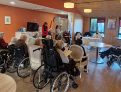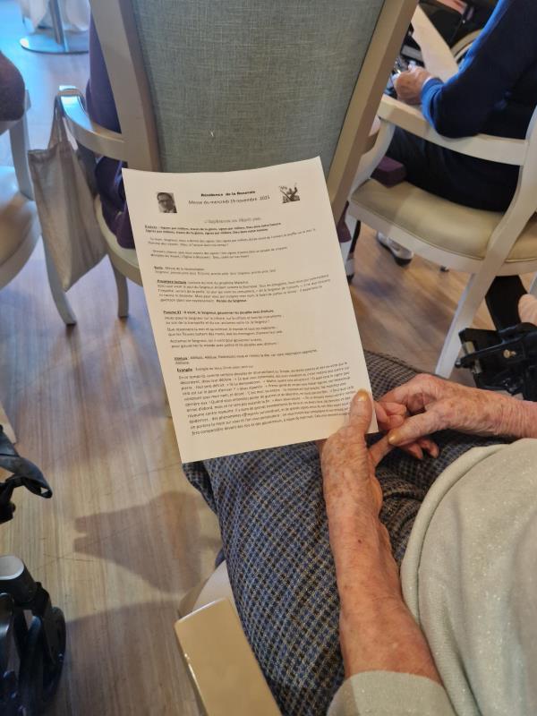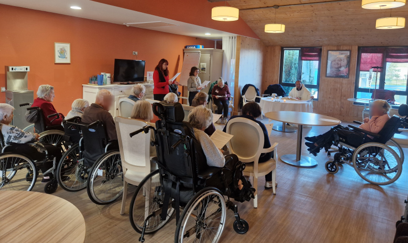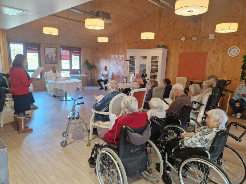 Les résidents de la Roseraie, réunis dans la salle commune, ont se recueillir lors de la messe et partagé un moment de prière et de chant.