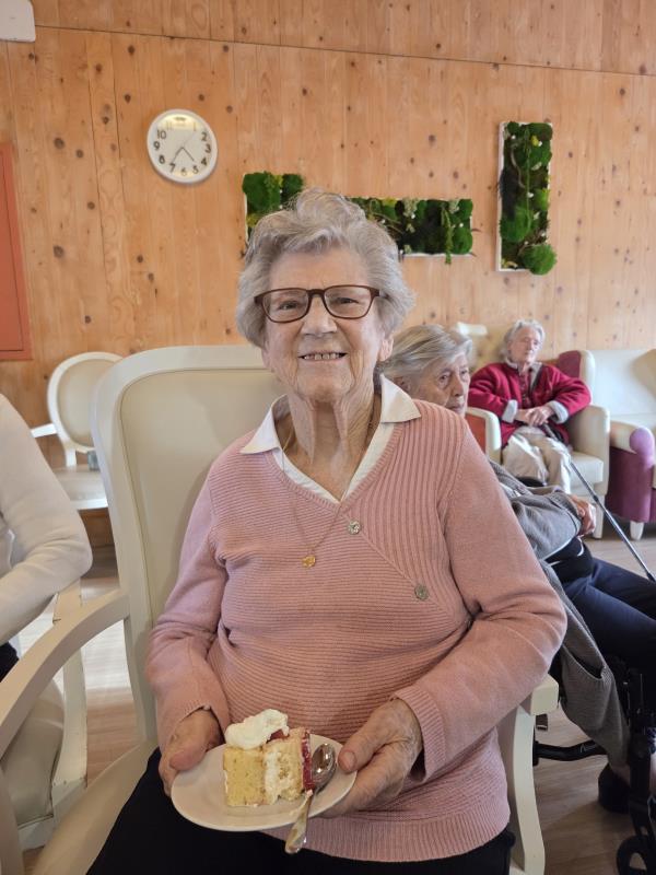 Chaque mois, La Roseraie organise une célébration des anniversaires des résidents, un moment attendu et chaleureux.