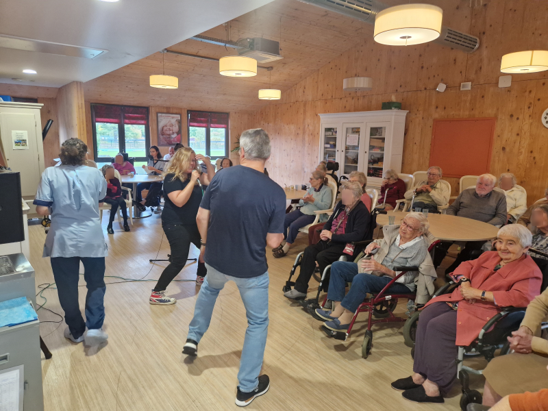 Mardi 23 septembre, une animation chants proposée par Hélène Lafleur, suivi d'un goûter convivial, a permis de rassembler résidents, familles et personnel. Pour l'occasion, notre chanteuse habituée de la Roseraie, avait concocté une série de chansons sur le thème du rock ! Elle a mis le feu jusqu'à la fin de sa prestation en terminant en apothéose par "Allumer le feu !" 🔥