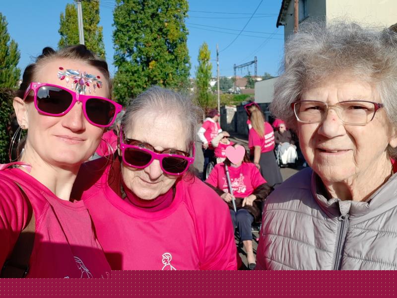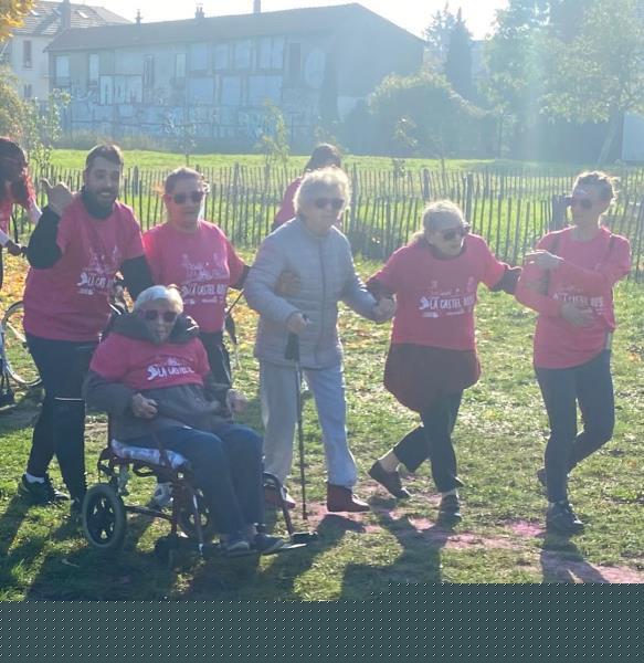 Décidément, on a vu la vie en rose 🎀 ce week-end à la Roseraie : après le déjeuner rose samedi, les résidents ont pris part à la Castel Rose dimanche 🎗. Nous sommes fiers d'avoir participé pour la 2ème année consécutive, à cette marche organisée par la ville de Viry-Châtillon dans le cadre d’Octobre Rose, campagne nationale de sensibilisation au dépistage du cancer du sein. Encadrés par le personnel soignant et des familles, les participants ont parcouru le circuit sous un soleil radieux ☀, certains en fauteuils, d’autres accompagnés au bras, portant les T-shirts roses de la marche 🚶♀️ ! Cette sortie était aussi conviviale que symbolique.