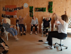 Comme chaque mois, Mathilde est venu animer un atelier de danse thérapie à la Roseraie. Cette activité permet à nos résidents de stimuler leur corps et leur esprit grâce au mouvement qui doit se synchroniser à la musique.