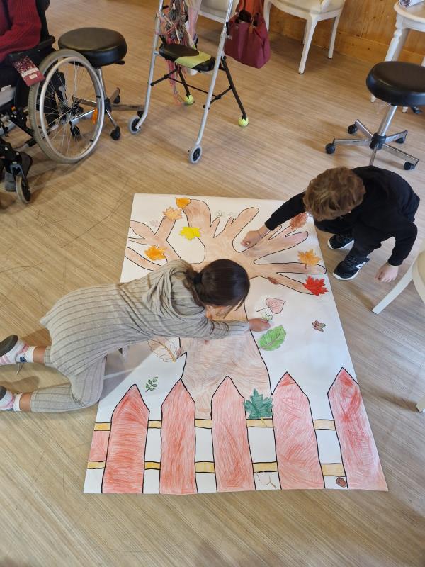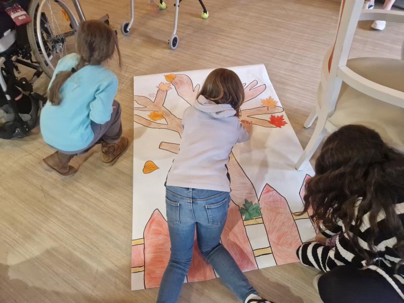 Les enfants du centre de loisirs Esclangon ont rendu visite aux résidents pour partager un moment de création et de convivialité. Ensemble, ils ont réalisé une magnifique fresque sur le thème de l’automne, mêlant feuilles coloriées et collages. 🍁